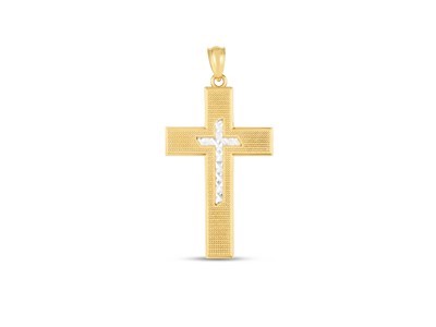 This highly fashionable Two-Tone Diamond Cut Pendant is crafted in 14k yellow & white gold with a high polish finish & hangs from a sleek bail. Perfect for pairing with any basic chain.
