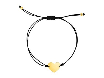 A sweet heart charm in spectacular 14k yellow gold is suspended beautifully from versatile, attractive black cord. Bracelet is 9 1/4 inches long and is adjustable.
