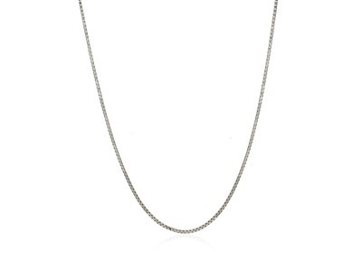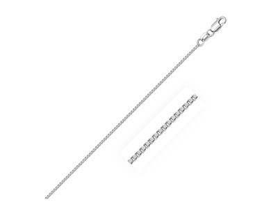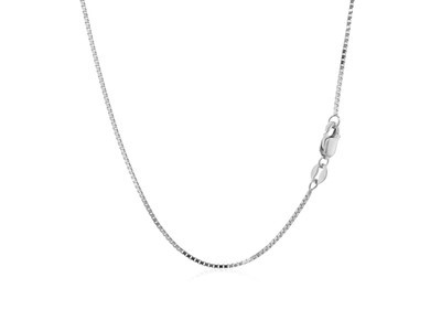 Classic box chain crafted in 14k white gold measuring 1.0 millimeters in width. Available in lengths 16 inches, 18 inches, 20 inches, 22 inches, 24 inches and 30 inches.
