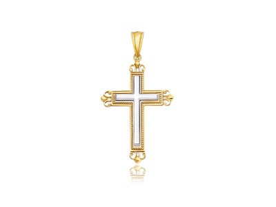 Old world in style, this budded design cross pendant features bead detailing and a polished bail. Made of 14k two-tone gold.