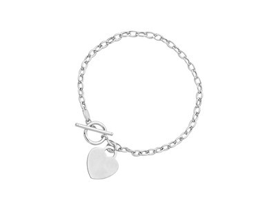This 7.5 inch bracelet is crafted in 14k white gold and features an attached dangling heart accent. Secured with a toggle clasp.