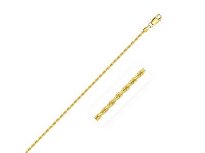Solid rope chain crafted in 14k yellow gold measuring 2.0 millimeters in width. Available in lengths 16 inches, 18 inches, 20 inches, 22 inches, 24 and 30 inches.